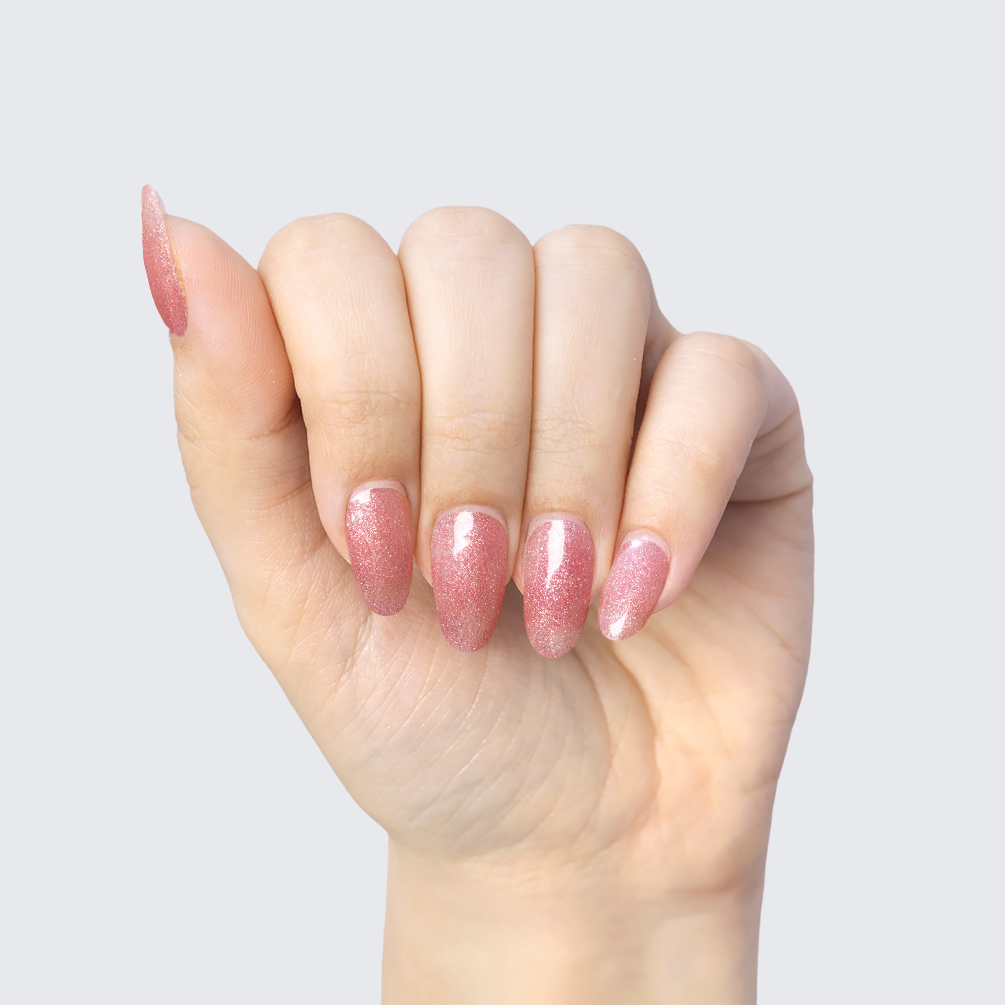 Our GLAM & GO gel nail wraps ensure that no matter how complex your chosen nail design, the application process remains incredibly simple. Our GLAM & GO gel nail wraps require no glue, base coat, or top coat—just peel them off the packaging, apply them to your nail, trim to size, cure twice, and voilà!